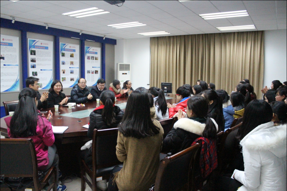 2014年12月25日晚上六点半,tyc33455cc省信用联社订单班行业座谈会在9120会议室隆重举行,出席此次座谈会的有浙江省农村信用社联合社教育培训中心俞晶磊主任、电子银行处客户服务中心蒋珊主任、人力资源处钱海明科长等6位行业领导老师,tyc33455cc党总支书记王祝华、省联社订单班班主任孙淑萍、辅导员章甜甜以及省联社订单班32名学员参加了会议。