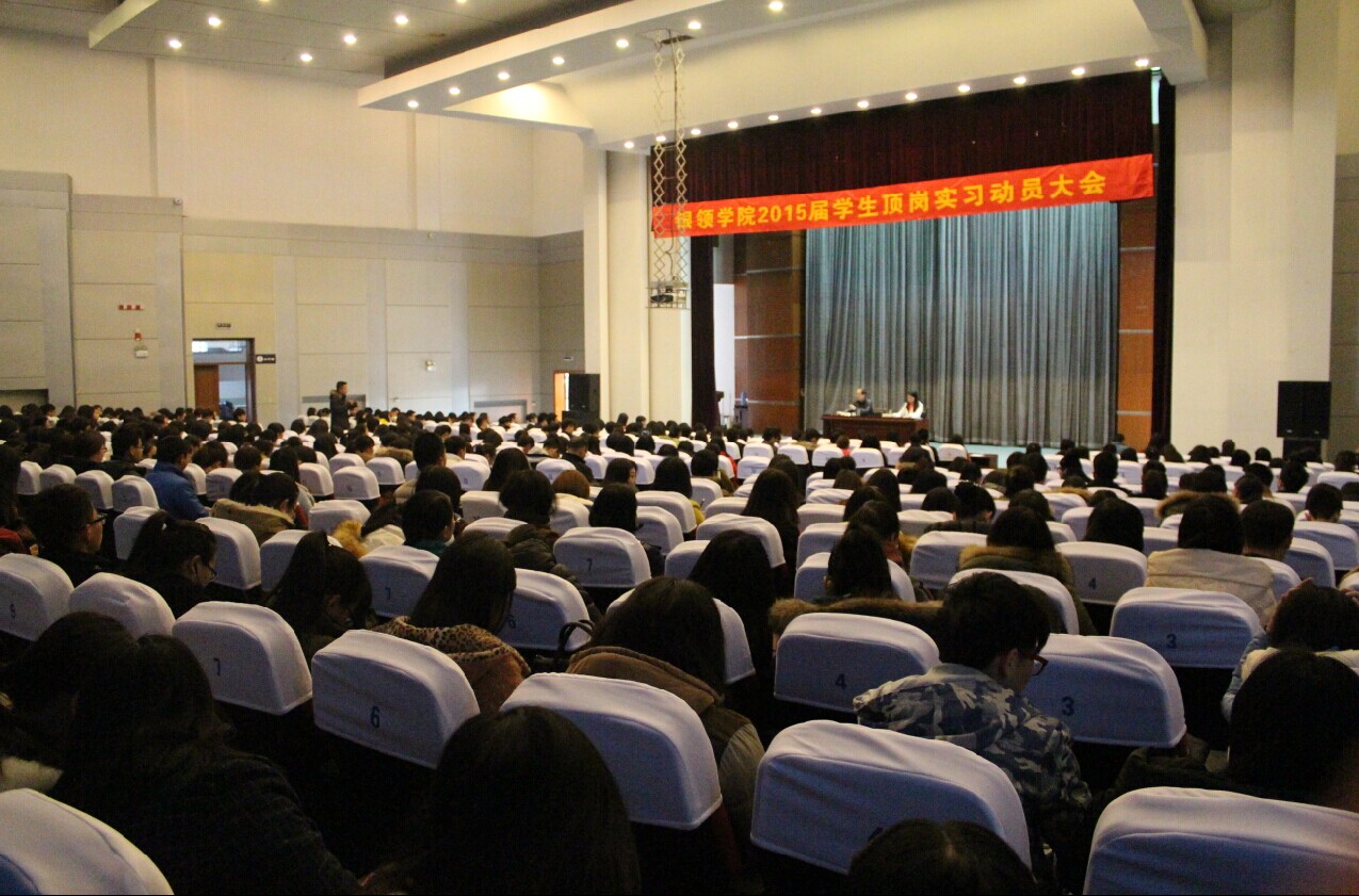 成长金院待何时,收获未来看今朝。2015年1月4日早上9点由tyc33455cc举办的2015届员工顶岗实习动员大会在明理报告厅隆重举行。tyc33455cc党总支书记、副经理王祝华,tyc33455cc经理助理方秀丽,学工办副主任闾春飞,辅导员章甜甜莅临本次动员大会,大会由方秀丽主持。