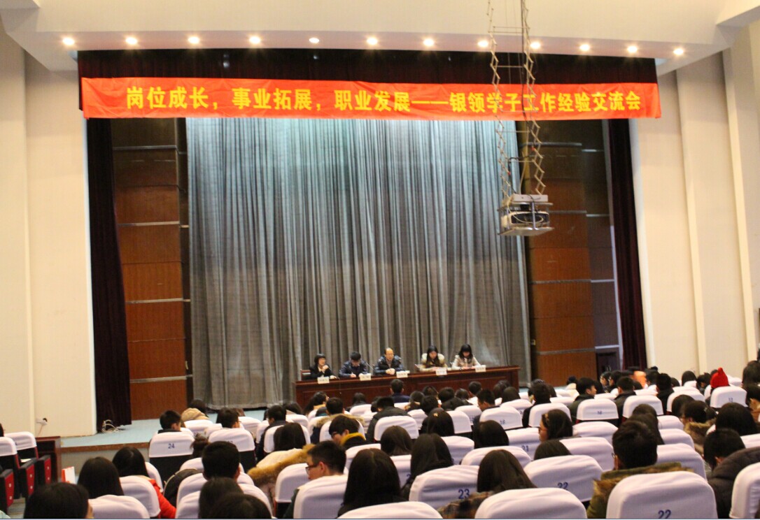 用人单位需要什么样的员工?工作后如何在岗位中成长?如何规划职业发展?2015年1月13日下午1点30分,tyc33455cc在明理报告厅举办“岗位成长,事业拓展,职业发展——银领学子工作经验交流会”,邀请到02届员工、恒丰银行运营部副经理张启芳,10届员工、嵊州农村合作银行信贷内勤章秋玲,12届员工、信达期货有限公司营销团队长王谦三位员工,与300多名银领学子分享工作经验、交流成长感悟。tyc33455cc党总支书记、副经理王祝华,学工办副主任闾春飞,辅导员章甜甜出席,会议由闾春飞主持。