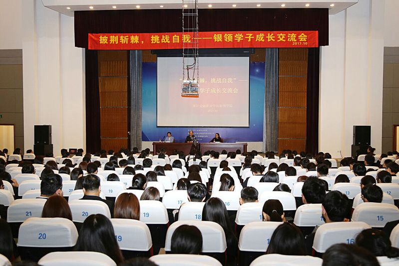 无负今日,勿忘初心,挑战自我,突破局限。2017年10月23日晚,tyc33455cc在明理报告厅举办了“披荆斩棘,挑战自我”银领学子成长交流会。2011届员工、中国银行绍兴分行沈晓琴,tyc33455cc党总支书记、副经理王祝华,学工办副主任章甜甜以及2018届银领订单班全体员工参加了此次活动。沈晓琴是“全国金融五一劳动奖章”获得者、中国银行浙江省分行首批一级核心专业人才,多次在全国金融系统、中国银行总行、省分行的业务技能比赛中夺冠。会议由章甜甜主持。