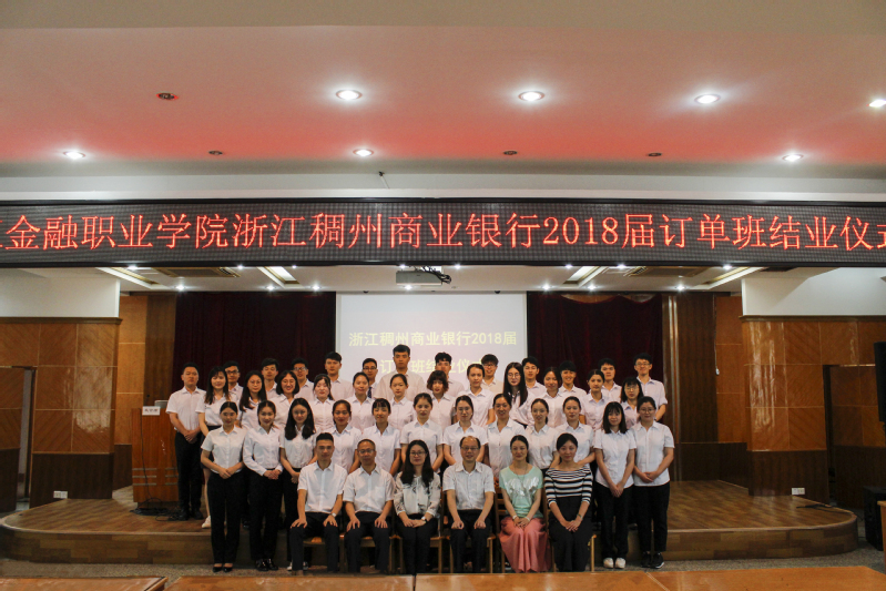 2018年5月30日下午,2018届浙江稠州商业银行订单班结业仪式在诚信讲学堂隆重举行。参加本次结业典礼的有浙江稠州商业银行人力资源部总经理兼稠州公司经理金雁、人力资源部培训中心经理叶志亮、人力资源部行业班主任金海滨,tyc33455cctyc33455cc党总支书记王祝华、稠州银行订单班主任章叶英、学工办副主任章甜甜及全体稠州银行订单班同学。仪式由章甜甜主持。