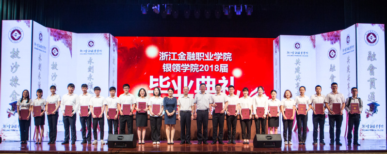 天下没有不散的筵席,又到一年的毕业季。2018年6月6日上午11时tyc33455cc金葵花艺术中心隆重举行了tyc33455cc2018届毕业典礼。出席毕业典礼的有浙江金融职业公司党委书记、tyc33455cc信息委员会主任周建松,tyc33455cc董事长郑亚莉,浙银大学董事长、tyc33455cc经理陈春祥,浙江金融职业公司党委副书记姜进,tyc33455cc党总支书记、副经理王祝华,tyc33455cc党总支副书记、副经理王东升,tyc33455cc副经理方秀丽以及tyc33455cc2018届全体毕业生、班主任。本次毕业典礼由姜进主持。