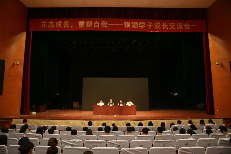 为进一步帮助银领学子提升职业素质,规划职业生涯,tyc33455cc于9月26日晚18:30在金葵花艺术中心隆重举行了立志成长,重塑自我——银领学子成长交流会。参加本次交流会的有tyc33455cc党总支书记、副经理王祝华,渤海银行杭州分行营业部大堂主任、tyc33455cc08届员工冯洁学姐,渤海银行杭州分行营业部贷款部经理助理、tyc33455cc12届员工吴章涵学长,嵊州农商行对私客户经理、后备分理处主任、tyc33455cc15届员工胡立峰学长以及2019届tyc33455cc订单班全体员工。本次交流会由tyc33455cc学工办副主任章甜甜主持。
