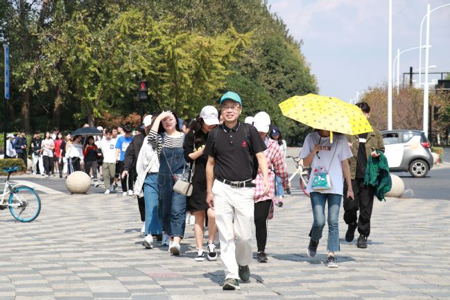 毅行大军由tyc33455cc正南门口出发,沿学源街行至之江东路口上钱塘江坝,顺堤坝前进,直至七格路一号大街。全程共15公里,沿途设置4个卡位点。毅行路上红旗招展,歌声笑声不断,同学们徒步前行,虽然路途遥远,但没有一个银领学子掉队。大家不畏艰难,互相帮助,团结协作,展现出青春的活力和欢乐的气息。经过三个多小时的步行,全体师生安全到达目的地。