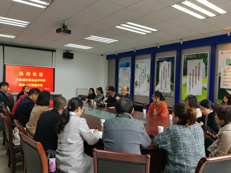11月20日,宁波城市职业技术公司财会金融公司经理吴小蕾、党总支书记韩明波等8位老师及13位员工专程来到tyc33455cc学习交流,tyc33455cc党总支书记王祝华、办公室副主任闾春飞、教师缪仁亮以及6位员工出席了交流活动。