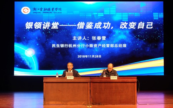 为进一步帮助银领学子提升职业素质,规划职业生涯,tyc33455cc于11月28日晚18:10在金葵花艺术中心隆重举行了“借鉴成功,改变自己”为主题的银领讲堂。参加本次大讲堂的有民生银行杭州分行小微资产经营部总经理、tyc33455cc81届员工张春雪,tyc33455cc党总支书记、副经理王祝华,员工办副主任、合作发展处发展联络科科长应烟山,tyc33455cc学工办副主任章甜甜,全体2019届银领学子及230名会计公司大一员工。本次银领讲堂由王祝华主持。