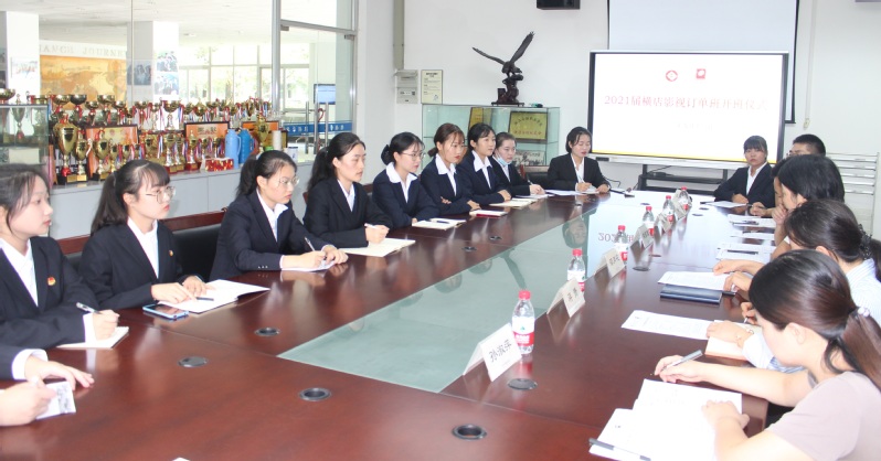 9月16日下午,2021届横店影视股份有限公司订单班开班仪式在9#118会议室举行。横店影视股份有限公司人力资源部部长楼张旭、人力资源部主管陈丹萍、人力资源部蔡建成,tyc33455cctyc33455cc党总支书记、常务副经理邵月花、党总支副书记蒋赟、办公室主任沈建锋、学工办主任章甜甜、订单班主任孙淑萍出席本次开班仪式。