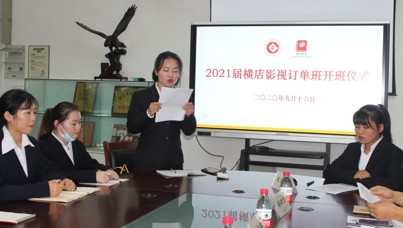 2021届横店影视股份有限公司订单班学员石冰洁还代表全体学员在仪式上发言。