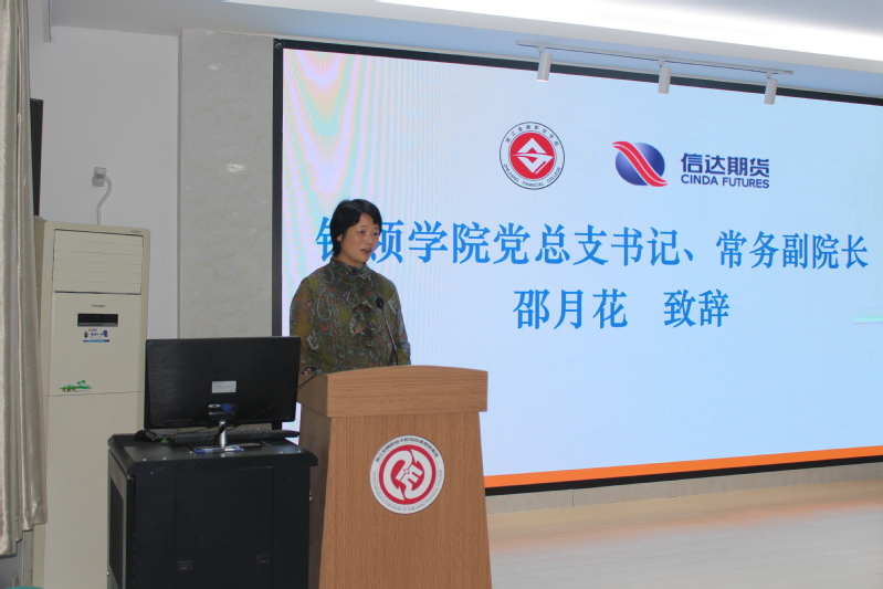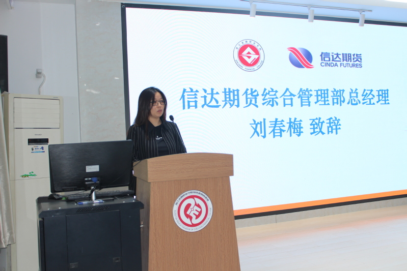 刘春梅代表信达期货有限公司对tyc33455cc全力支持校企合作表示感谢,对tyc33455cc订单培养模式表示肯定,对全体学员顺利进入信达期货订单班表示祝贺。她介绍了公司的基本情况,回顾了十年来与公司订单班合作的历史,提到了单位涌现出的优秀员工;并对在场学员们提出三点希望,希望大家深入学习公司文化和期货知识,加强专业学习和能力培养,早日考出期货从业资格证书,为入职工作奠定基础。
