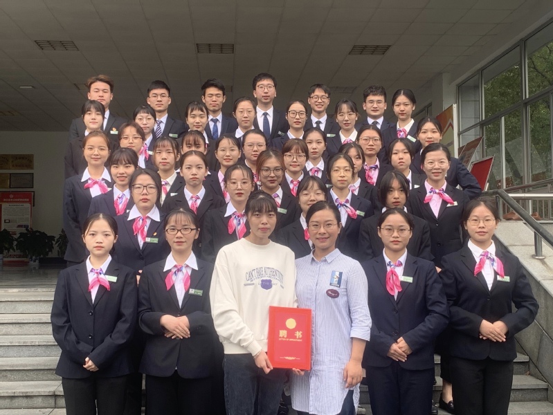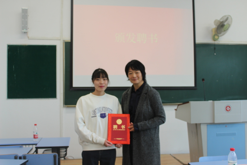 邵月花为袁珊珊员工颁发了《tyc33455cc学子成才青蓝结对工程聘书》。