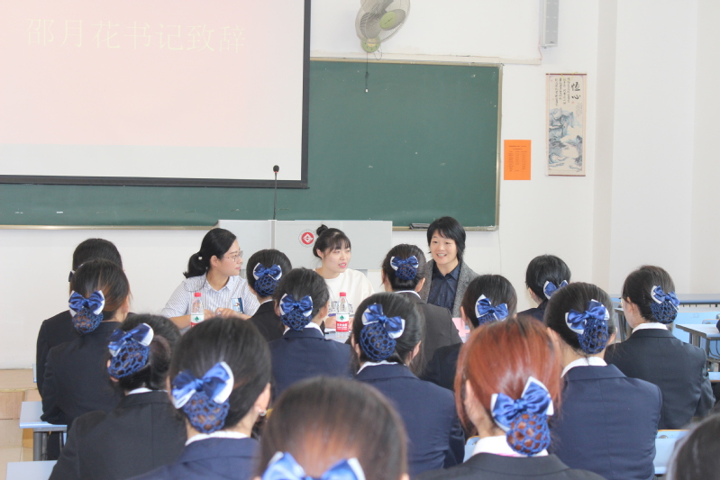 活动伊始,邵月花对袁珊珊员工在百忙中抽时间返校与学弟学妹们分享成长经验表示热烈欢迎和由衷感谢,并向同学们介绍了袁珊珊员工在校学习期间及工作后的优异表现。她分析了农村商业银行工作的前景与优势,希望同学们珍惜来之不易的订单培养机会,对照优秀成功人士的自我修炼法则即严于律己、不畏吃苦、注重心灵成长,努力提升、厚积涵养、不断进步。