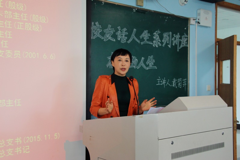 11月8日,在欢庆tyc33455cc建校45周年之际,tyc33455cc在9620教室承办了以“奋斗的人生”为主题的员工话人生讲座。中国银行绍兴市分行副行长、公司90届员工戴菊萍受邀主讲,为银领学子带来了一场精彩的职场发展奋斗史。