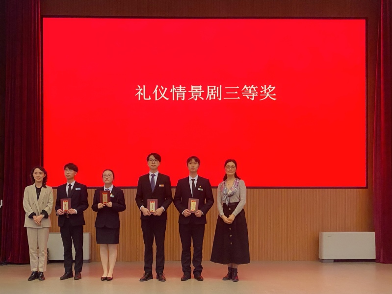 绘声绘色、幽默诙谐的礼仪情景剧比赛和仪态动人、精彩绝伦的职业礼仪操展示后,蒋赟公布了本次大赛获奖名单:民生银行、浙商银行、金华银行订单班《民生银行员工们的一天》获礼仪情景剧一等奖;泰隆商业银行订单一班《王小莉的电话之旅》、台州银行订单班《台州银行宴请合作伙伴》、农村商业银行订单三班《合作愉快》获礼仪情景剧二等奖;台州银行、民泰商业银行订单一班《小王的成长日记》、中国邮政集团订单二班《邮储银行与三辉公司的战略合作》、温州银行订单班《一次拜访》、萧山农村商业银行订单班《客户经理的营销》获礼仪情景剧三等奖。农村商业银行订单二班、杭州联合银行订单二班、萧山农村商业银行订单班获职业礼仪操优秀奖。在场评委为获奖队伍颁奖。