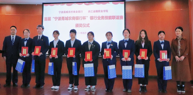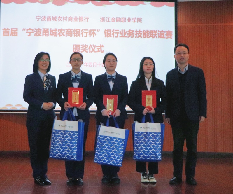 颁奖仪式前,双方选手经过在各赛项中的激烈角逐,公司农商18(2)班李娜、甬城农商行陈瑶、胡珍珍分别在单字输入、传票输入、单指单张点钞赛项中荣获一等奖;甬城农商行金可超、徐丹霞、董柯缨、农商18(2)班李娜、甬城农商行朱蒙佳、陈瑜分别在单字输入、传票输入、单指单张点钞赛项中荣获二等奖;甬城农商行陈秋红、徐秦佳、张璐、徐丹倩、公司会计19(9)班陈文欣、金融20(10)班陈邹萍、姚佳奇、俞益施、农商18(3)班严佳成分别在单字输入、传票输入、单指单张点钞赛项中荣获三等奖。