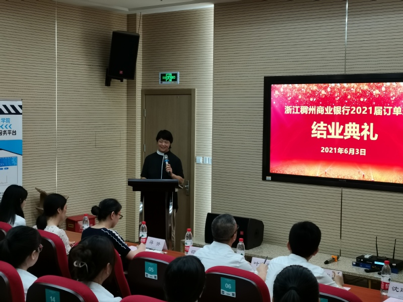 “我们银行在毕业季,到公司来牵头举办订单班结业典礼,通过营造一种仪式感,为这一年联合培养订单生的学业画上一个圆满的句号,亲自送他们走上稠商行行员岗位。”浙江稠州商业银行人力资源部培训中心主任叶志亮如是说。