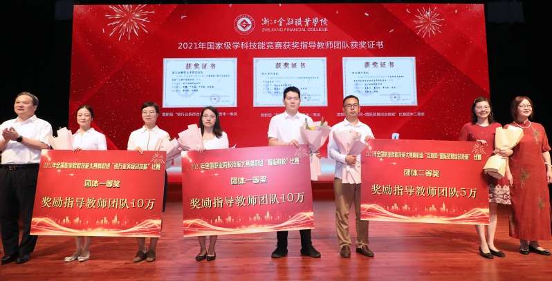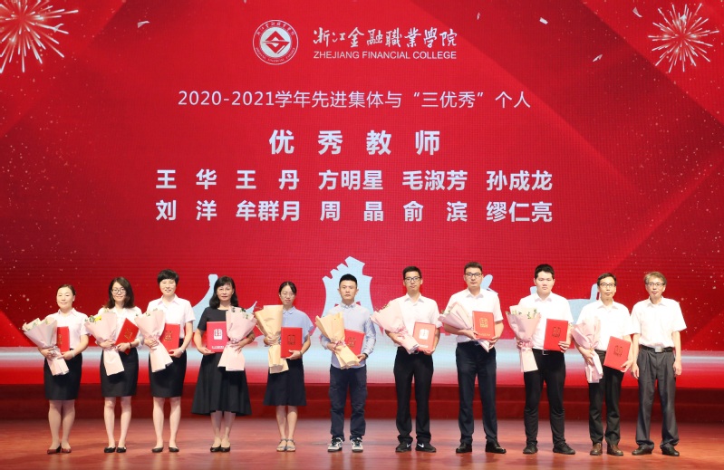 在大会上,公司举行了各类先进的颁奖仪式。公司对指导员工参加全国职业院校技能大赛高职组“银行综合业务技能”比赛获团体一等奖的优秀指导教师章叶英老师进行隆重表彰,公司党委书记周建松、董事长郑亚莉代表公司向她颁发了证书和奖金;对获得公司“优秀教师”荣誉称号的缪仁亮老师、获得公司“优秀班主任”荣誉称号的徐烨老师进行隆重表彰,公司党委副书记王琦向他们颁发了证书。
