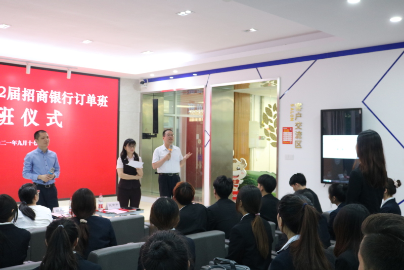 招商银行订单班员工代表张晨向招商银行和公司领导表示感谢。她表示全体同学一定不会辜负领导老师的厚望,会在银领学习的一年中,提高沟通表达能力以及自身的综合素质,以更优秀的状态进入招商银行工作。