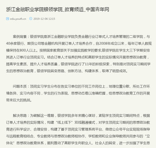 员工思想政治教育成果获中国青年报社高职院校思想政治工作创新示范案例。