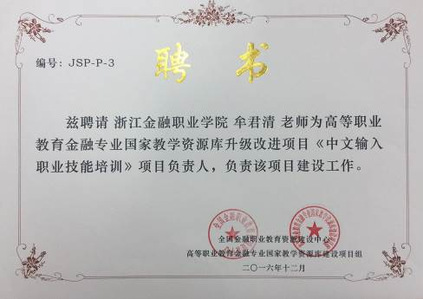 《中文输入职业技能培训》成为高等职业教育金融专业国家教学资源库升级改进项目。
