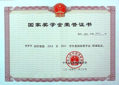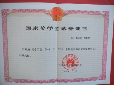 员工获国家奖学金特别评审奖。