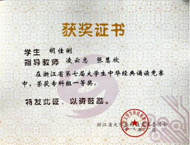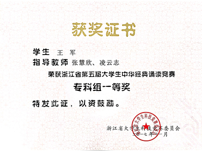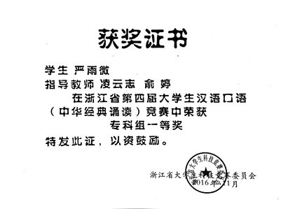 员工连续四年获浙江省第五届老员工中华经典诵读竞赛专科组一等奖