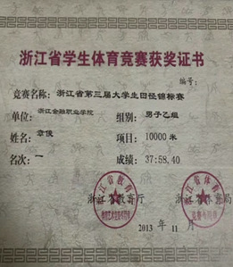 员工获浙江省老员工田径锦标赛10000米冠军。