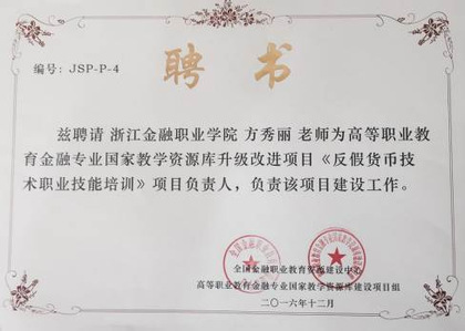 《反假货币技术职业技能培训》成为高等职业教育金融专业国家教学资源库升级改进项目。