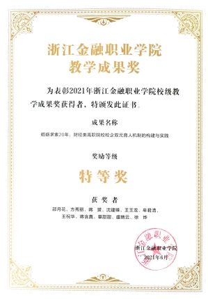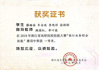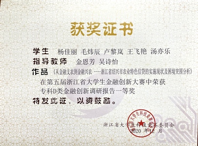 员工获浙江省老员工金融创新大赛专科D类金融创新调研报告一等奖。