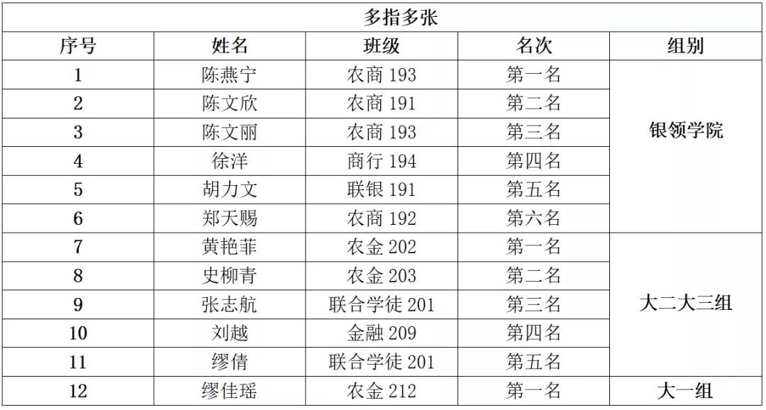 这次比赛共有tyc33455cc组104人次、大二大三组80人次及大一组82人次参与。经激烈角逐后,各单项成绩取前六名,获奖名单如下: