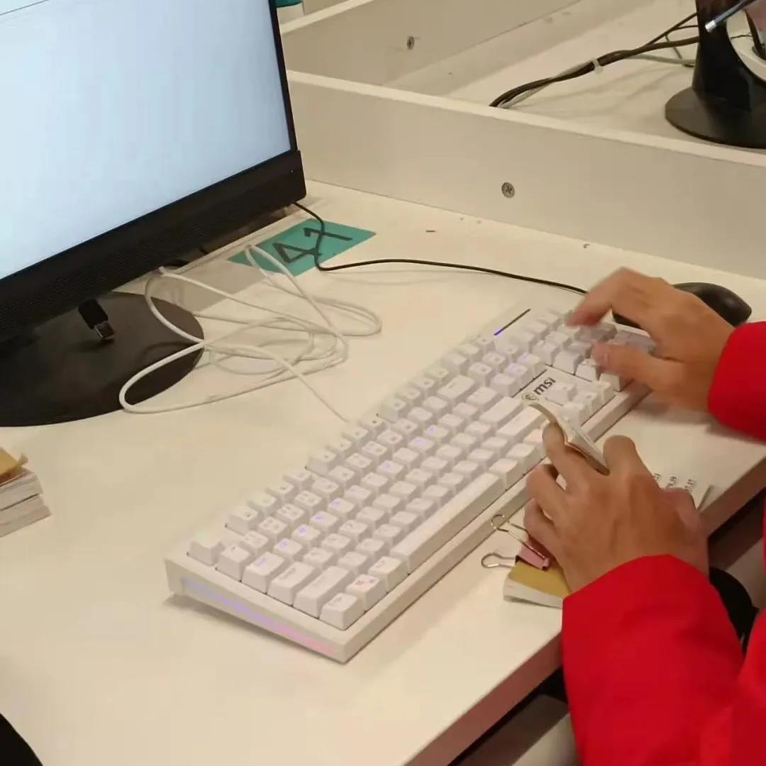 在单字输入比赛时,选手们全神贯注,敲击键盘的声音犹如大珠小珠落玉盘,清脆而明快。