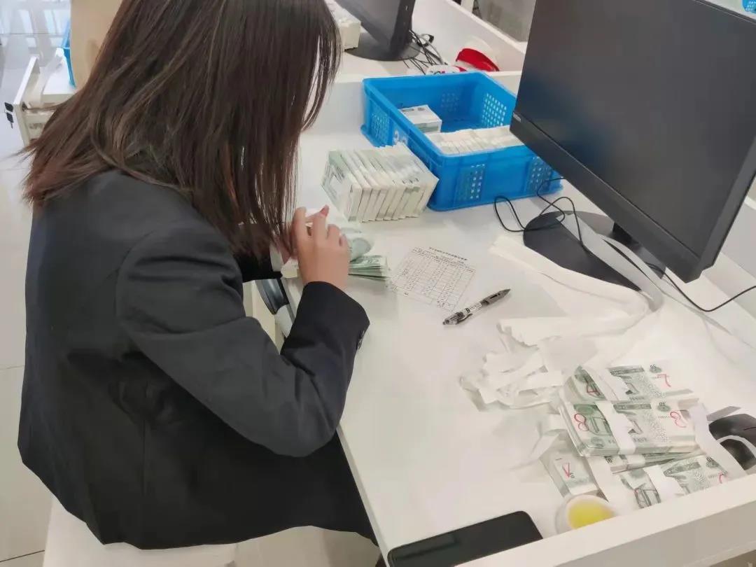 “开始”口令一响,参赛选手们迅速起把,清点、计数、扎把。选手们手指如飞,钞券在指间快速滑落,犹如在弹奏一曲欢乐明快的乐曲。