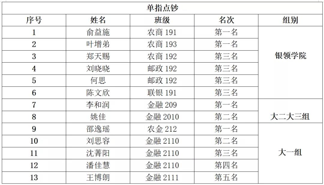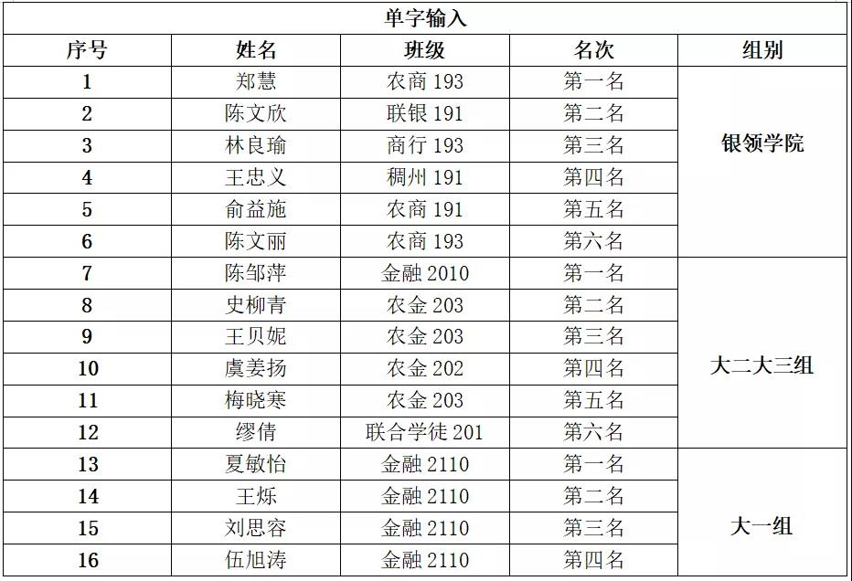 这次比赛共有tyc33455cc组104人次、大二大三组80人次及大一组82人次参与。经激烈角逐后,各单项成绩取前六名,获奖名单如下: