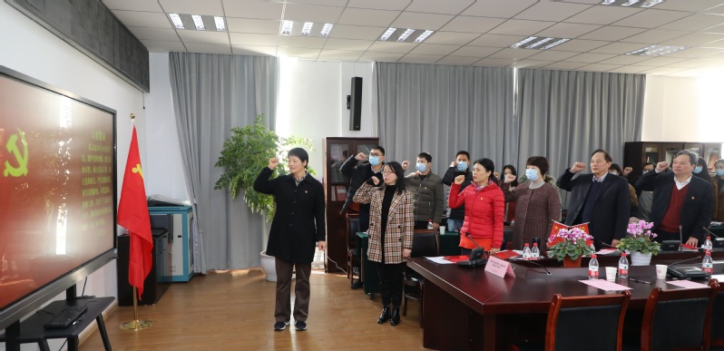 会上,公司党总支为全体党员颁发了政治生日纪念卡。全体党员面向党旗,重温了入党誓词,共同分享了政治生日蛋糕。