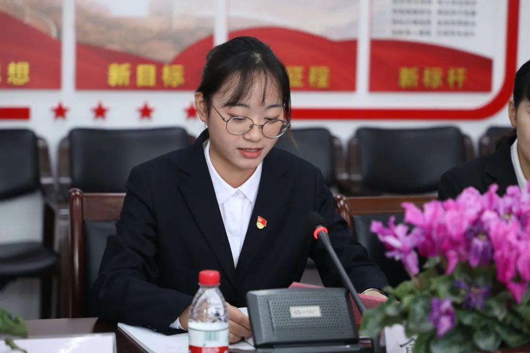 获奖员工代表俞益施表达了对82级员工的感谢、对公司领导老师的感恩,作为即将踏上工作岗位的2022届银领学子,她表示将在岗位上发扬金院精神、展现银领风采。