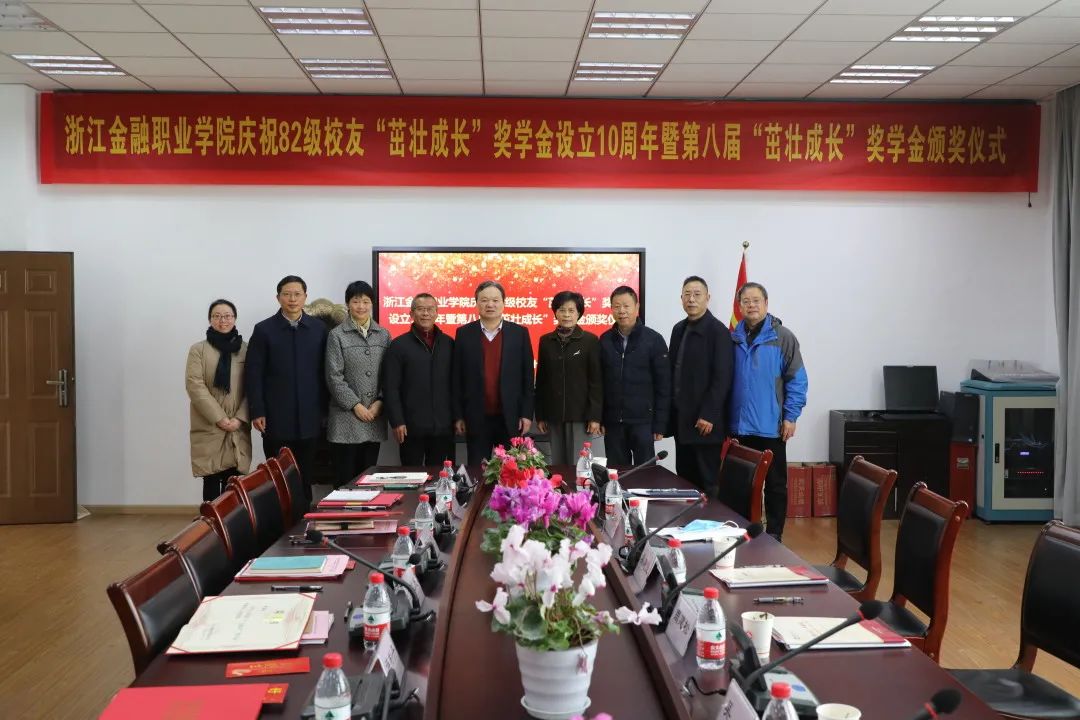 1月10日上午,tyc33455cc庆祝82级员工“茁壮成长”奖学金设立10周年暨第八届“茁壮成长”奖学金颁奖典礼在tyc33455cc金通楼517会议室隆重举行。浙江金融职业公司党委书记周建松,浙江省金融教育基金会常务副理事长、tyc33455cc员工总会常务副会长吴胜,82级同学会会长、杭州天汇商贸公司总经理吴惠良,82级员工、中国农业银行数据中心副巡视员林鹏,82级员工、中国农业银行浙江省分行正处级调研员黄云钟,浙江地方金融发展研究中心常务副主任(正处级)、浙江省金融教育基金会秘书长郁国培,公司合作发展处处长、党委员工工作部部长王东升,公司tyc33455cc党总支书记、常务副经理邵月花,tyc33455cc党总支副书记蒋赟出席典礼,第八届“茁壮成长”奖学金获奖员工参加典礼。王东升主持典礼。