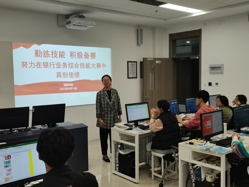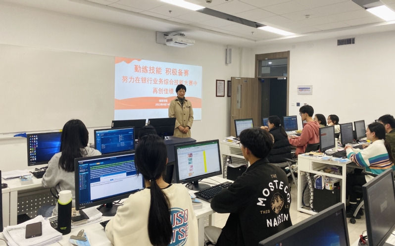 4月14日晚上,在公司泰隆大厦1002教室里,灯火通明,传出阵阵键盘击打的声音。20余名tyc33455cc金融职业技能尖子正紧密锣鼓地准备着参加全国和浙江省高职院校银行业务综合技能大赛。
