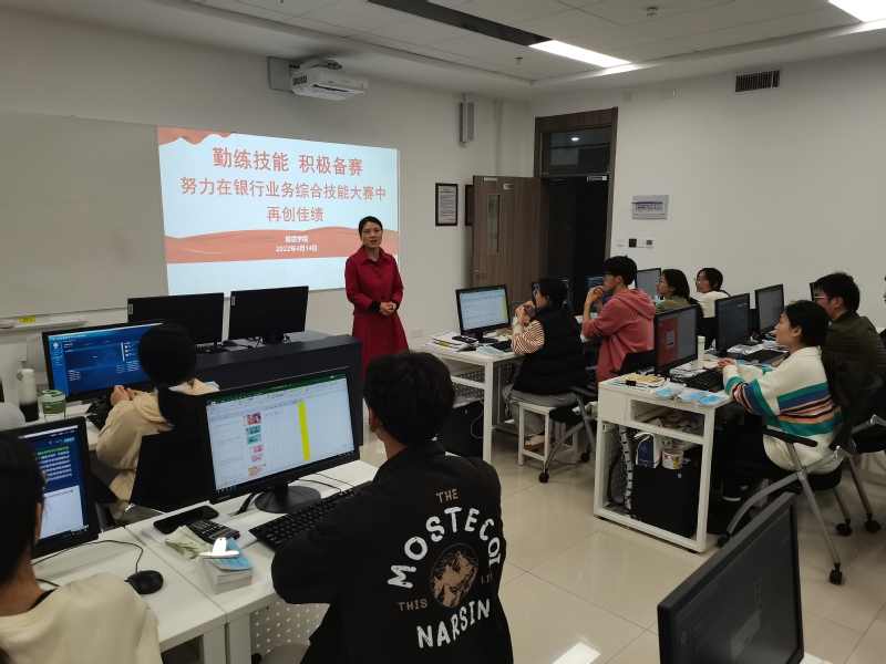 4月14日晚上,在公司泰隆大厦1002教室里,灯火通明,传出阵阵键盘击打的声音。20余名tyc33455cc金融职业技能尖子正紧密锣鼓地准备着参加全国和浙江省高职院校银行业务综合技能大赛。