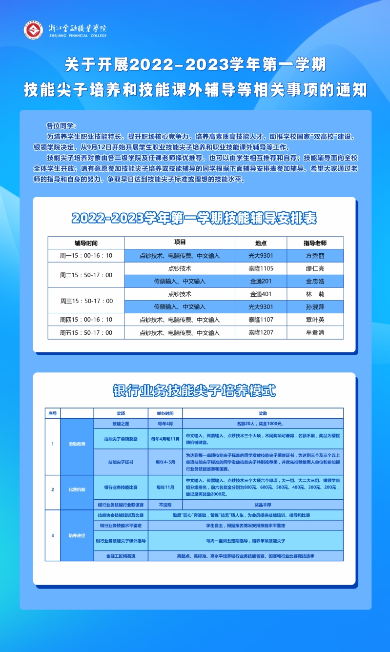 请有意愿参加技能尖子培养或技能辅导的同学根据下面辅导安排表参加辅导。希望大家通过老师的指导和自身的努力,争取早日达到技能尖子标准或理想的技能水平。