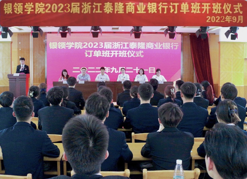 9月21日下午,2023届浙江泰隆商业银行订单班开班仪式在诚信讲学堂顺利举行。浙江泰隆商业银行人力资源部副总经理林丽、苏州常熟辛庄支行行长、优秀员工薛良良、浙江泰隆商业银行人力资源部2023届订单班负责人林瑜璠、tyc33455cctyc33455cc党总支书记、常务副经理邵月花、2023届浙江泰隆商业银行客户经理订单班班主任孙淑萍、服务经理订单班班主任徐烨、tyc33455cc学工办主任章甜甜、辅导员杨斌英出席开班仪式,2023届浙江泰隆商业银行订单班全体学员参加仪式。开班仪式由2023届浙江泰隆商业银行订单班员工张俊皓主持。