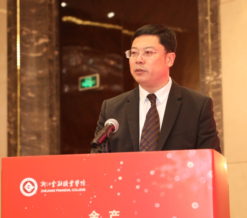 陈春祥在会上讲话。他表示,作为行业领导一直兼职担任公司tyc33455cc经理,十分关注高等职业教育发展,特别是产教融合、校企合作。他指出,在国家发展进入第二个“百年”奋斗目标和公司发展迈向建设职业大学新征程的大局上,持续做好金融人才订单培养,始终离不开加强校企合作,显得尤为重要。他希望公司和各单位不断深化合作,携手推进高水平职业大学建设,协同培养更多更高层次的高素质技术技能金融人才。