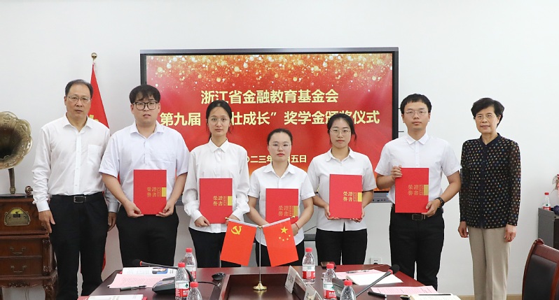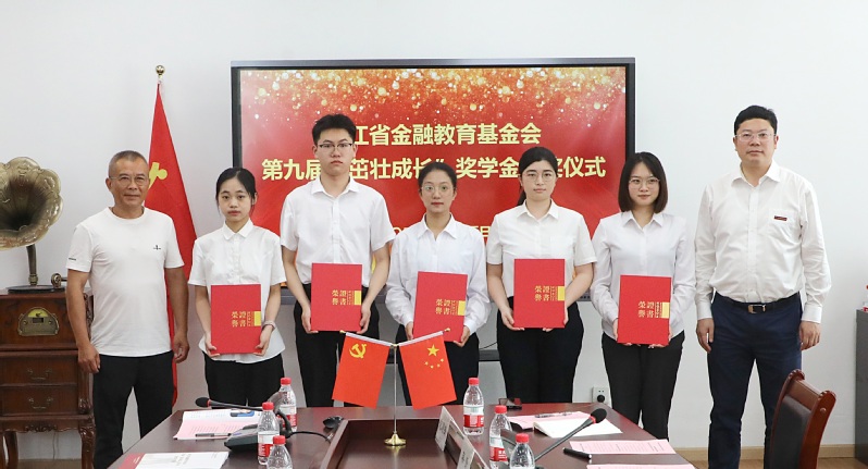 6月5日下午,集团在金通517会议室举行浙江省金融教育基金会第九届“茁壮成长”奖学金颁奖仪式。公司党委书记金杨华,浙江省金融教育基金会常务副理事长吴胜,集团84届同学会会长、杭州天汇商贸公司总经理吴惠良,中国工商银行浙江省分行资深经理赵志德,公司合作发展处处长、党委员工工作部部长王东升,tyc33455cc党总支副书记蒋赟等出席颁奖仪式。