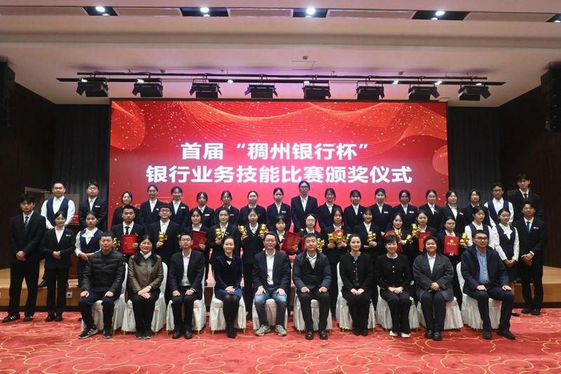 浙江稠州商业银行总行人力资源部总经理助理吴丽娜,tyc33455cc副经理胡烨丹,职业技能教研室全体教师、办公室、学工办,稠州银行订单班行业班主任冯祯,以及参赛选手、tyc33455cc员工代表等参加颁奖仪式。