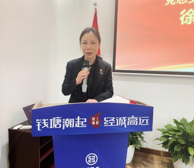 徐维代表中国工商银行杭州钱塘支行党总支对tyc33455cc党支部一行的到来表示热烈欢迎。她指出,此次党建联建是双方积极响应党中央加强基层党建工作的号召,推动金融行业与教育领域深度融合、协同共进的重要举措。她希望通过党建联建,在资源共享、优势互补的基础上,不断加强校企合作,推动人才培养迈上新台阶,为金融行业发展及钱塘地方经济建设做出更大贡献。