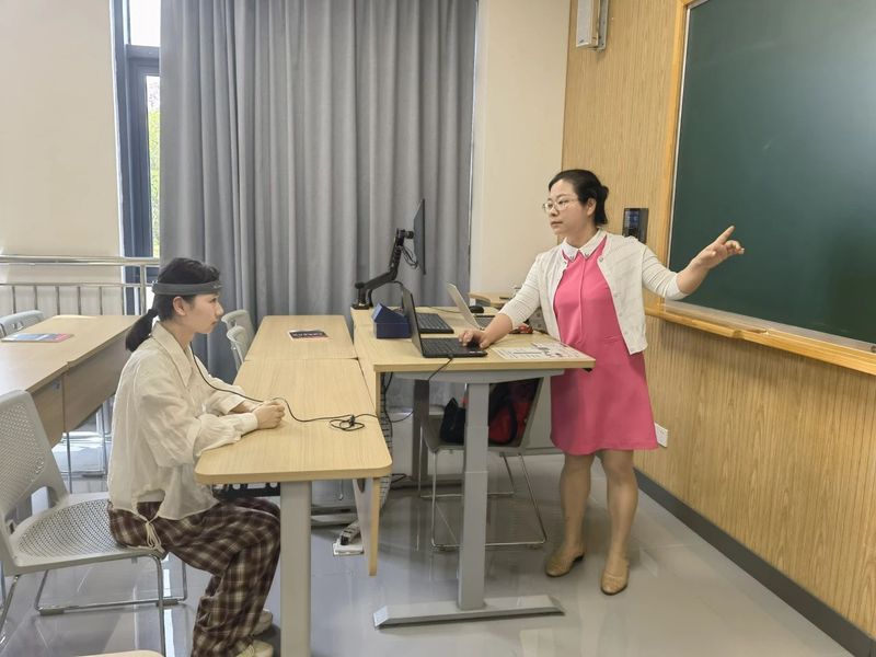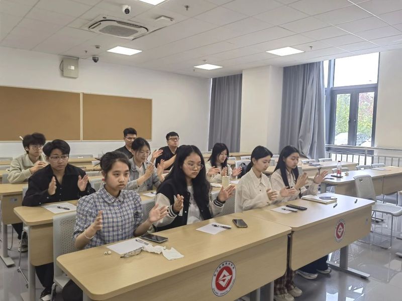 课堂开始,徐烨就抛出一连串轻松有趣的心理互动游戏,引导同学们认识到“焦虑是成长的好伙伴”,并指导大家如何将紧张转化为动力。随后,脑活动测试环节让同学们更直观地了解自己的思维模式和情绪状态,进一步增强了他们对自身心理的认知。