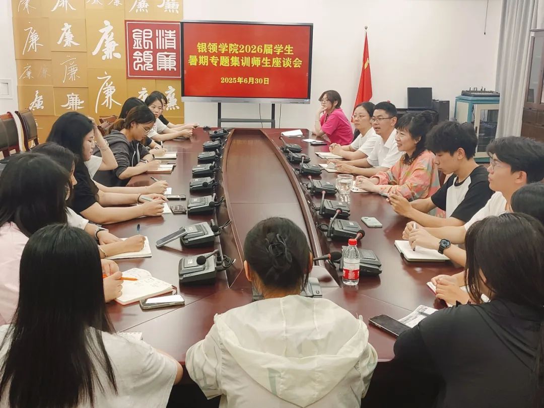 潘锡泉感谢同学们对集训提出的宝贵建议。他强调,集训的目的不仅仅是帮助同学们快速了解金融银行业的要求,提高同学们的职业认知,更是帮助同学们发现自身不足,并通过集训以及接下来暑假的黄金时间进行强力补短板,提高个人职业能力,早日达到银行业从业人员的标准。他勉励同学们珍惜集训机会,勤练职业技能,学习规章制度,提升执行效率,严守集训纪律,锤炼优良班风,以 “准员工” 标准严格要求自己,实现更快更好地成长。会上,各班员工代表围绕集训安排、技能考核、暑期实习等话题积极踊跃发言,为提升公司课堂教学质量、提高人才培养质量等建言献策。此次座谈会的圆满召开,搭建了高效的师生沟通平台,为暑期专题集训和人才培养的精准实施奠定基础。同学们亦深切感受到公司的真挚关怀,将进一步推动公司公司产品管理持续优化,为公司事业高质量发展蓄势添能。