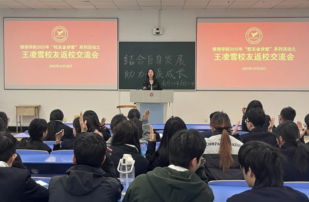 王凌雪聚焦金融行业,深度剖析发展现状与工作前景,解读单位用人需求,传递实用职场心得。她着重强调,银领学子需打牢绩效与业务的根基,追求卓越绩效,高效并准确地完成工作;明确职业发展规划并定期复盘,结合自身兴趣和优势,稳步迈向职业新高度。