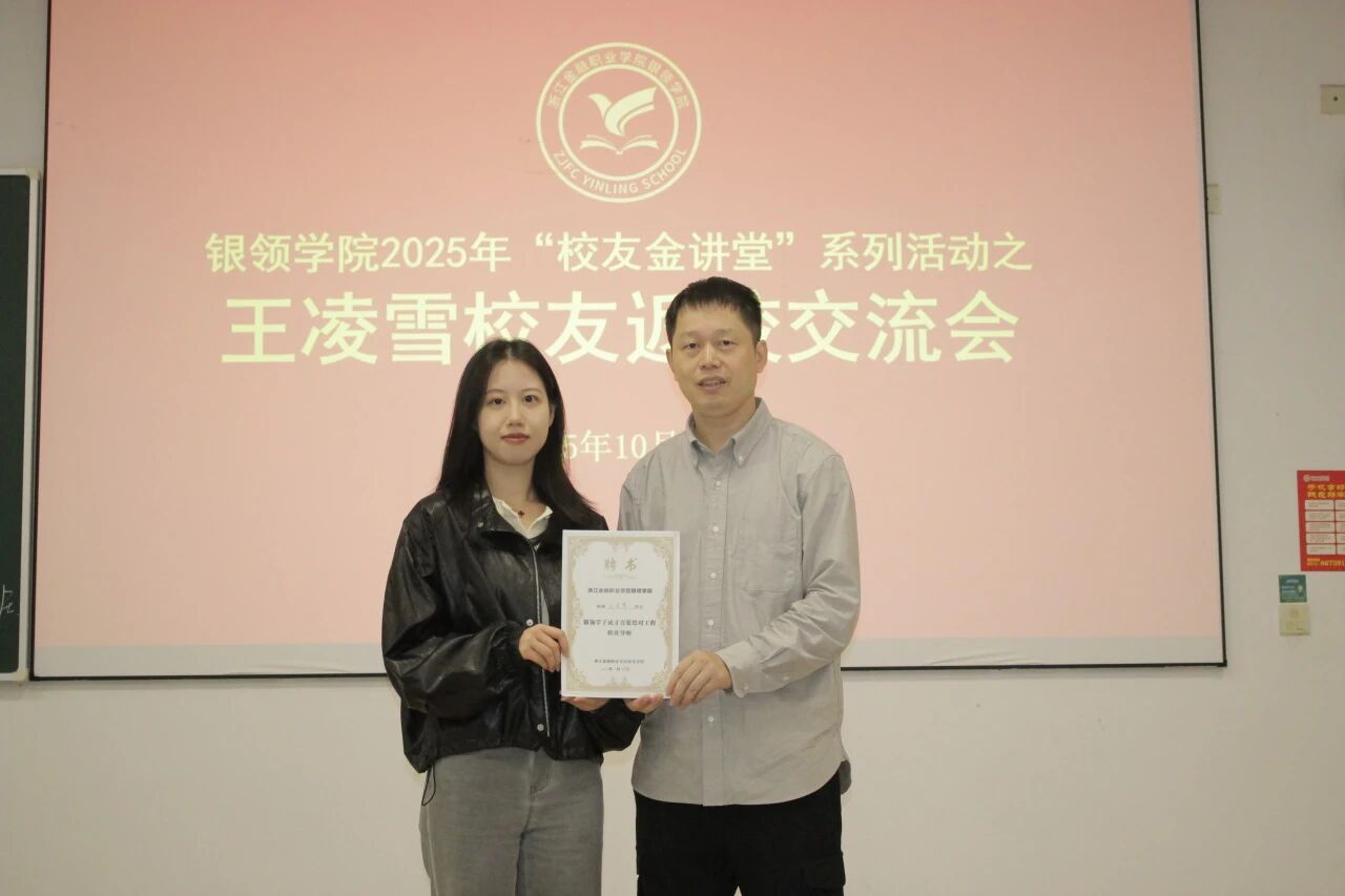 为助力员工明晰职业方向,走稳成长之路,10月28日,公司举办“员工金讲堂”系列活动之江苏银行杭州分行综合柜员王凌雪返校交流会,与学弟学妹们面对面交流。职业技能教研室副主任、订单班班主任金忠浩出席并主持交流会。商行231班、商行232班全体同学参加交流会。