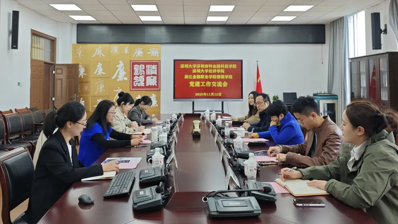 11月12日上午,深圳大学深圳南特金融科技公司党委书记刘海山、深圳大学经济公司党委书记张颖一行莅临tyc33455cc调研交流,tyc33455cc党总支书记吴慧凤、tyc33455cc副经理胡烨丹热情接待并开展座谈交流。
