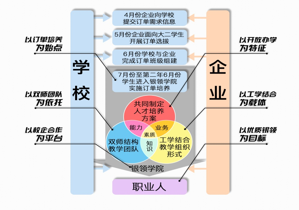 与金融机构成功签订订单协议的员工在第五学期进入tyc33455cc接受订单式培养。订单式人才培养使企业的用人竞争前移,后进来的企业在人才选择方面处于劣势地位。tyc33455cc的人才培养模式,在校企合作机制上形成“赶集”效应,建立了校企合作的长效机制。
